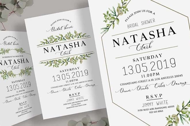 If you’re planning on throwing a decent bridal shower to a wide variety of guests, this elegant bridal shower template will help you design a stylish invitation to get everyone’s attention. It’s customizable with Photoshop and you can change its text, fonts, and colors however you like. The template is also available in 3 different designs as well.
