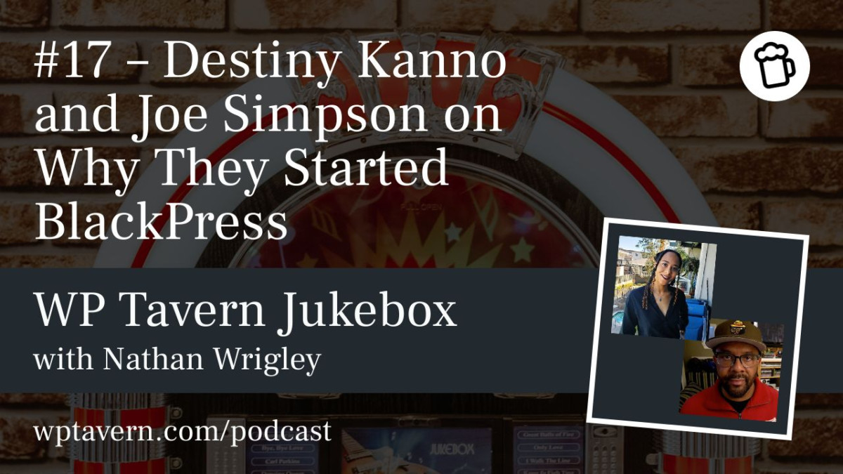 If you’re interested in finding out more, you can find all the links in the show notes by heading over to WP Tavern.com forward slash podcast, where you’ll find all the episodes. And so without further delay, I bring you Destiny Kanno and Joe Simpson. I am joined on the podcast by two people Destiny Kanno, and Joe Simpson. Hello.