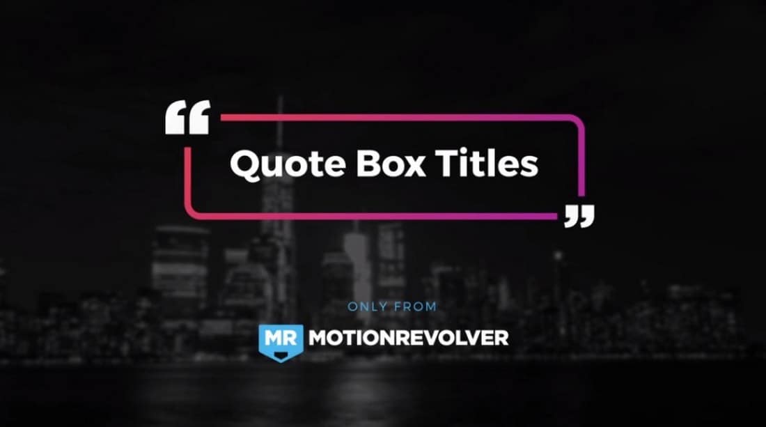 Quote Box is a modern and minimalist After Effects title template that allows you to showcase your titles in a quote-like design. You can also use the template to add quotes to your videos with attractive animations.