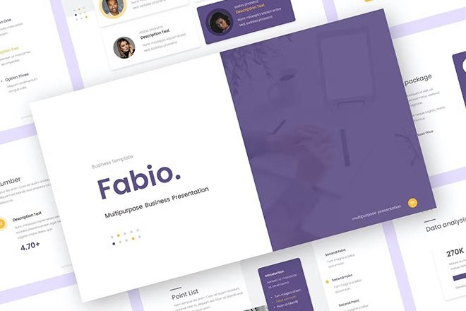 Here we have another presentation template with no bells, and whistles. Fabio is a professional looking template that comprises 30 slides that can all be fully customized to create the perfect business presentation within any industry. This multipurpose option is one of the best Google Slides templates for business that you’ll find on the market today.