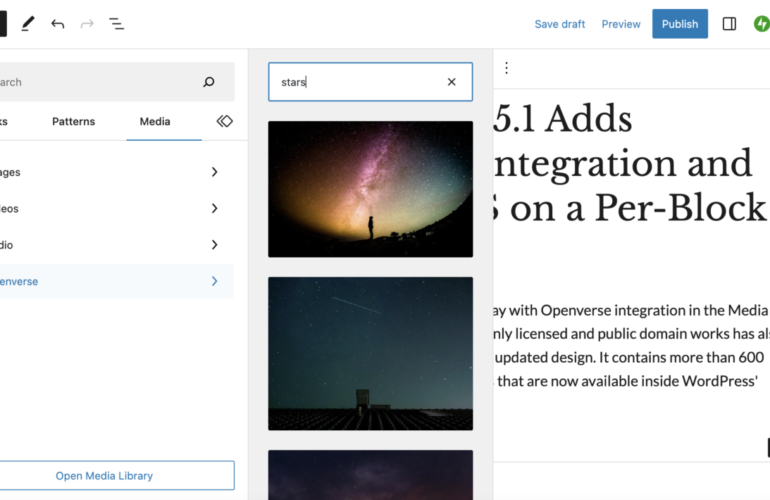 Gutenberg 15.1 was released this week with Openverse integration in the Media tab. The Openverse library of openly licensed and public domain works has also moved to its own website with an updated… Source