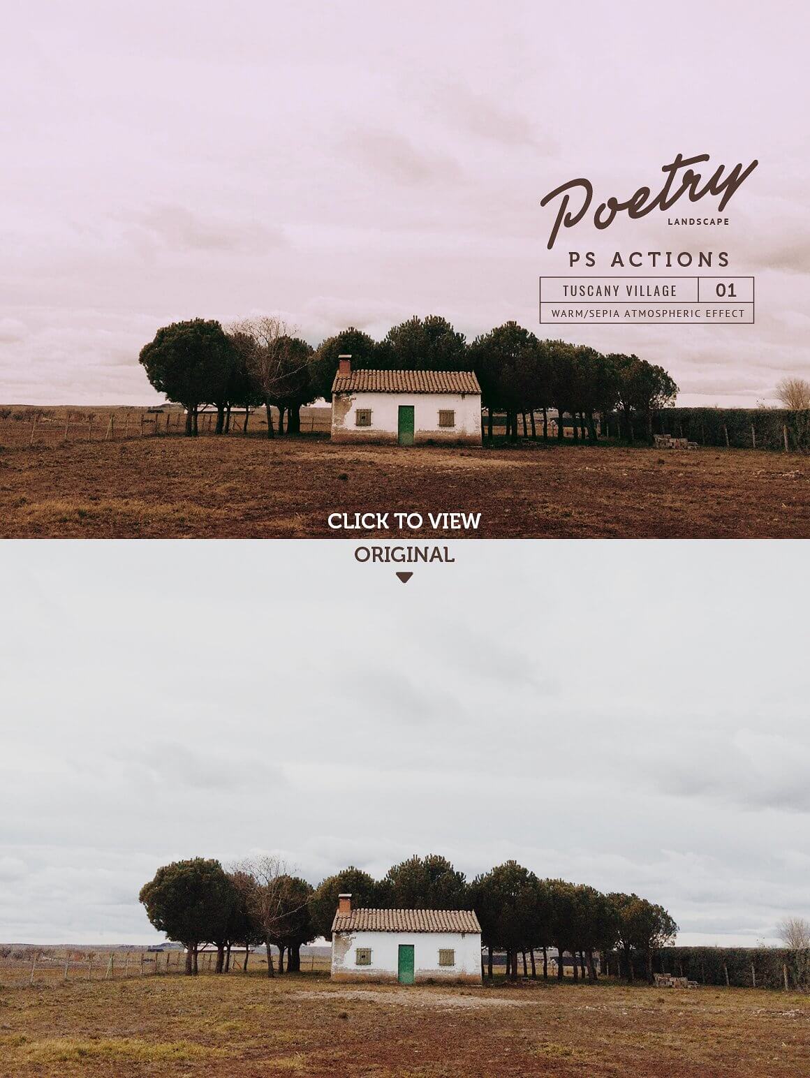 The stylish toning actions in this pack are crafted to improve and enhance your landscape photos. But, they can also be used with portrait photos as well. There are 5 different Photoshop actions in this pack.