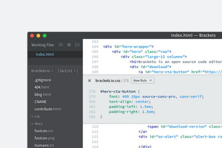 Brackets is a code editor made specifically for web design. Made by Adobe, this code editor comes with some amazing features that make front-end coding a breeze.