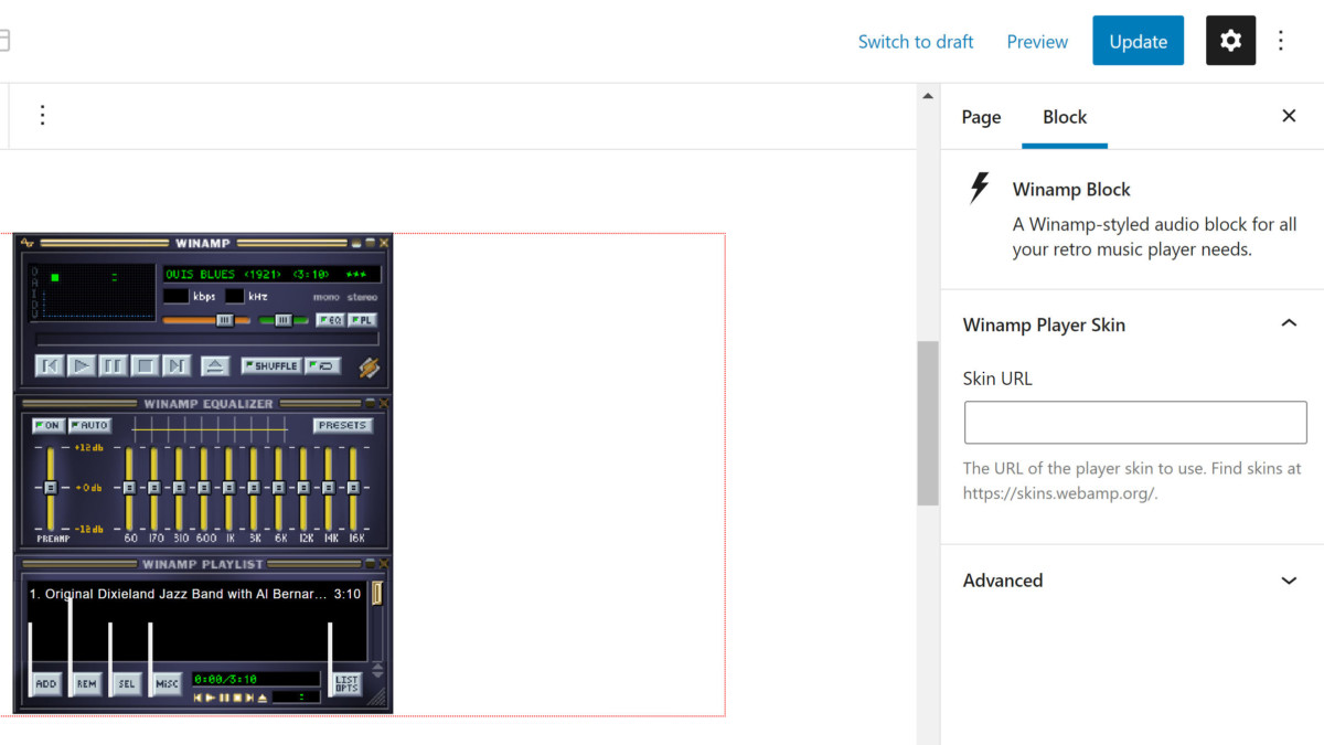 While I enjoyed the nostalgia of the old player, I want to see modern-day implementations of these types of features for WordPress. Instead of a throwback to Winamp, where is the skinnable audio block?