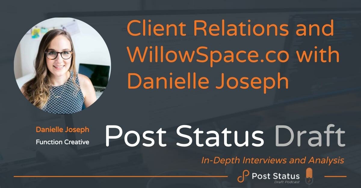 In this episode of Post Status Draft, Danielle Joseph talks about her work with clients as a designer and how that has shaped her agency and Willowspace.