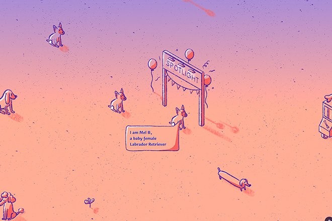 The example above uses a gradient with bright, bold color against a dark background to hold all of the visual elements together. What would you do with the images of the dog and cat without the gradient?
