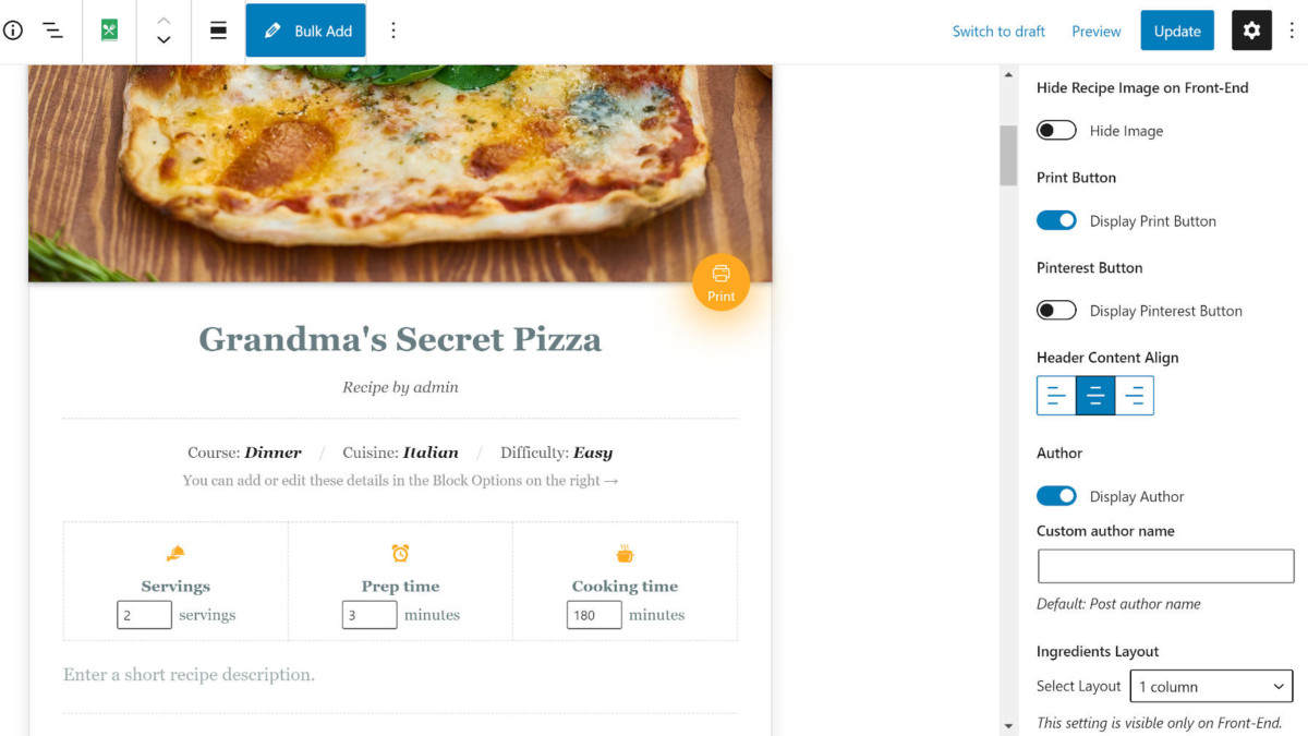 Recipe Card Blocks is packed full of options and features. If that’s your thing, it might interest you as a potential user. And, the pro version tacks on tons more, such as star ratings, social sharing, and adjustable serving sizes from the front end.