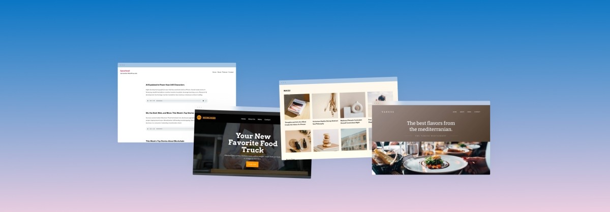 Four new WordPress.com themes, with beautiful options for foodie businesses, podcasts, and bloggers.