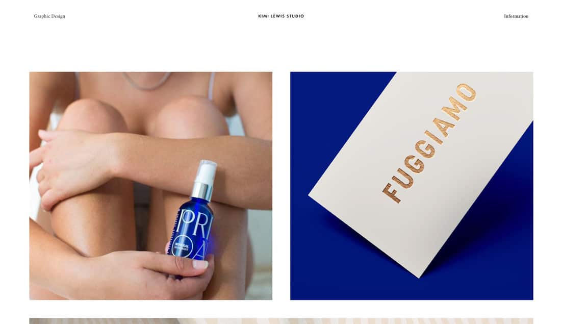 Kimi Lewis does something a little bit different with her portfolio, above. Rather than lots of small blocks to show portfolio projects, this design goes big. It mixes and matches squarer and long horizontal images in an oversized grid.