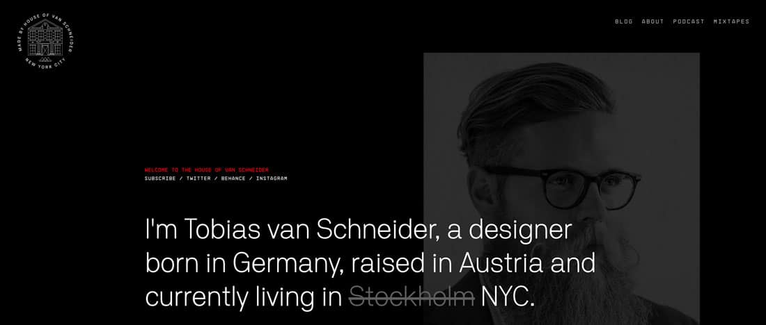 Strong typography and language can be the perfect introduction to your work (and portfolio). Most people probably know of Tobias van Schneider from his ventures as a designer or podcaster, but would you expect his portfolio home page to be mostly text?