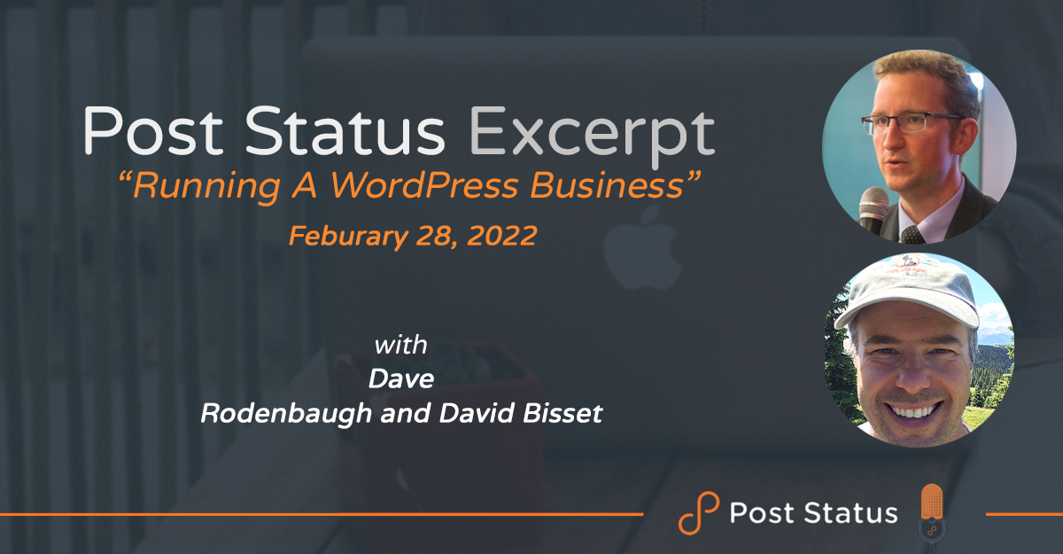 In this episode of Post Status Excerpt, David has a conversation with Dave Rodenbaugh, founder of Recapture.io. Dave has been involved with the business of WordPress plugins since 2009 with products like Business Directory Plugin and Another Classified WordPress Plugin.