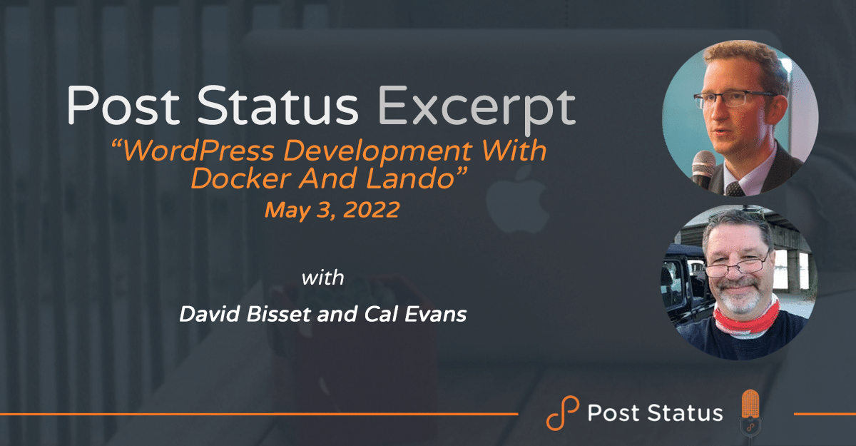 In this developer-oriented conversation for Post Status Excerpt, David talks about WordPress development with Cal Evans. Cal explains the basics of Docker and Lando — as well as the advantages of using them. Docker is an open platform for developing, shipping, and running applications. It can work with Lando to automate your development workflow.