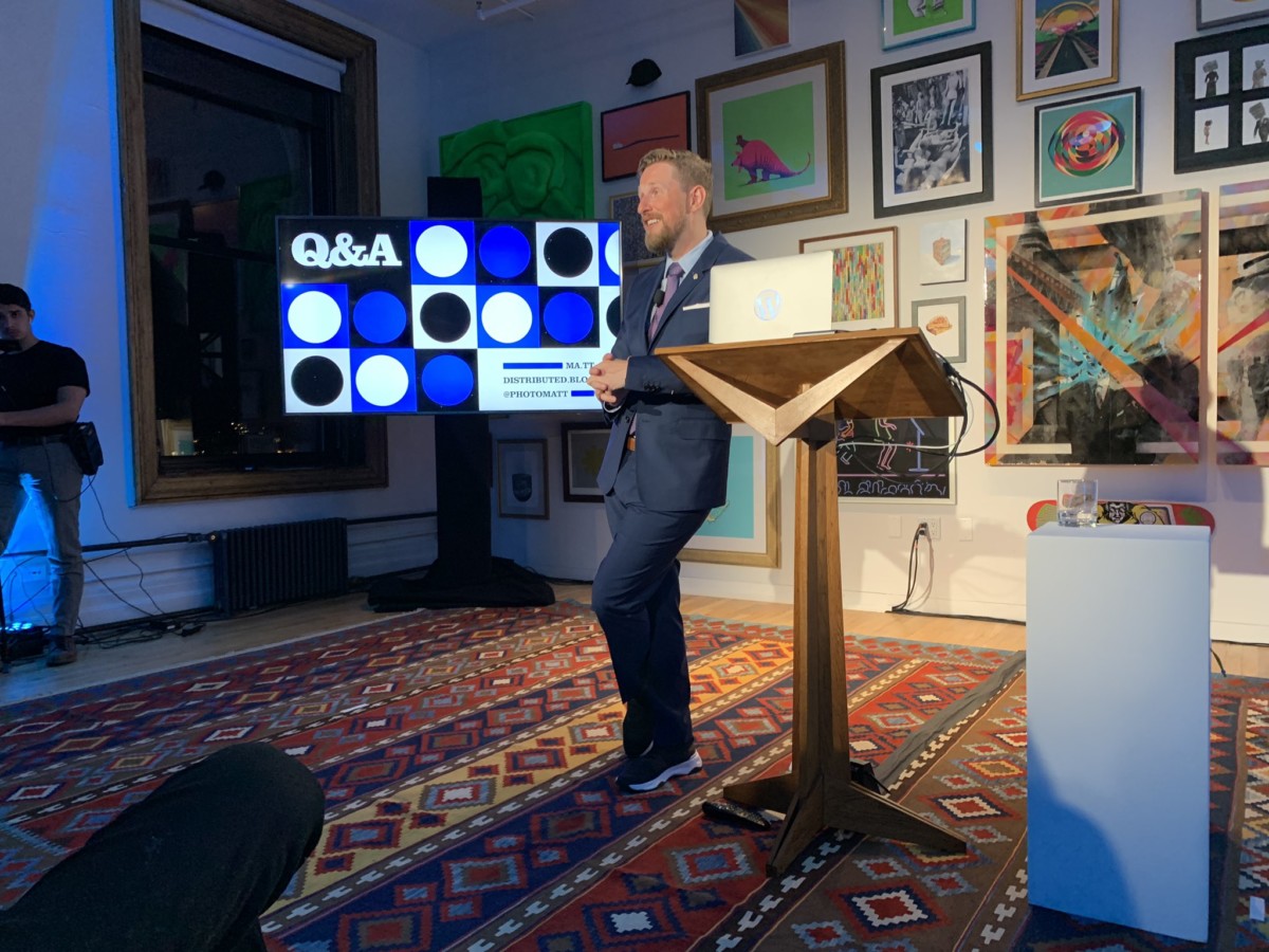 Dan Knauss: What a difference a physical venue makes! At the old Tumblr offices in Noho, this year’s State of the Word looked like an opening at a small art gallery. No big screen, just a lot of framed visual art. No stage, just a simple podium. And after such a long period of time without in-person events, there was Matt waiting to go up front, casually leaning off to the side of the audience (maybe two dozen people) a few feet away. There were some awkward (but good!) moments, plenty of laughs, and a personable atmosphere that came through — even on YouTube. A lot of important facts and numbers were shared that we’ll dig into later, I’m sure. That’s what we usually focus our attention on. But my initial impressions had to do with mood, atmosphere, and tone — the emotional register of the themes that went through Matt’s address and into his dialogue with the audience afterward.
