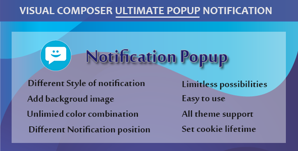 LIVE PREVIEW BUY FOR $20.00 Visual Composer – Ultimate Popup Notification Different Style of notification Add backgroud image Unlimied color combination Different Notification position Limitless possibilities Easy to use All theme support Set cookie lifetime Our Other Plugins Source