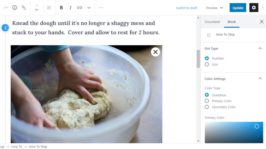 The plugin’s How-To block is what drew me in. Its purpose is to allow end-users to provide step-by-step instructions with both a text block and an image for each step. It is a pattern that is common on sites such as wikiHow and other tutorial websites.