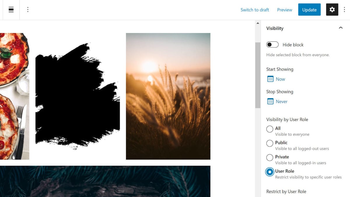 There are ways to do all of this today by piecing various plugins together, using custom shortcodes, or writing code. However, when an entire site is made of blocks, you only need one method to control anything’s visibility. Literally.