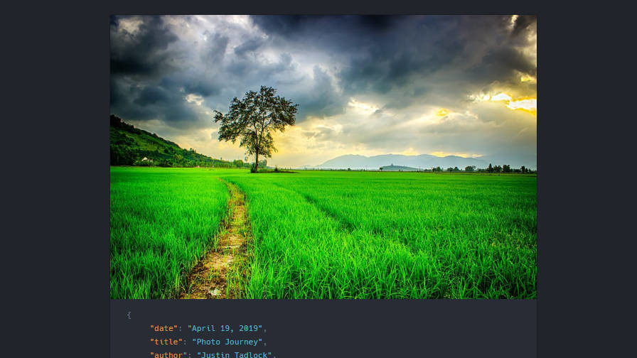 This narrow design is what makes the theme stand out. On the blog page and other archive-type pages, the theme presents the featured image with an interesting JSON-style output of the post metadata such as the date, title, and author.