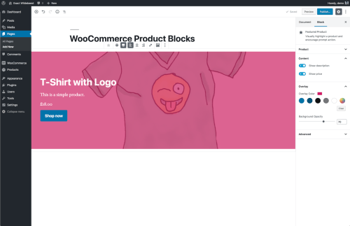 WooCommerce Blocks 1.3.0 was released yesterday with six new blocks. Previously, the plugin allowed users to display a grid of products by category. The new version introduces a Featured Product Block with design options for customizing nearly everything about the display, including color overlay, price and description, text alignment, call-to-action button, and the product photo.