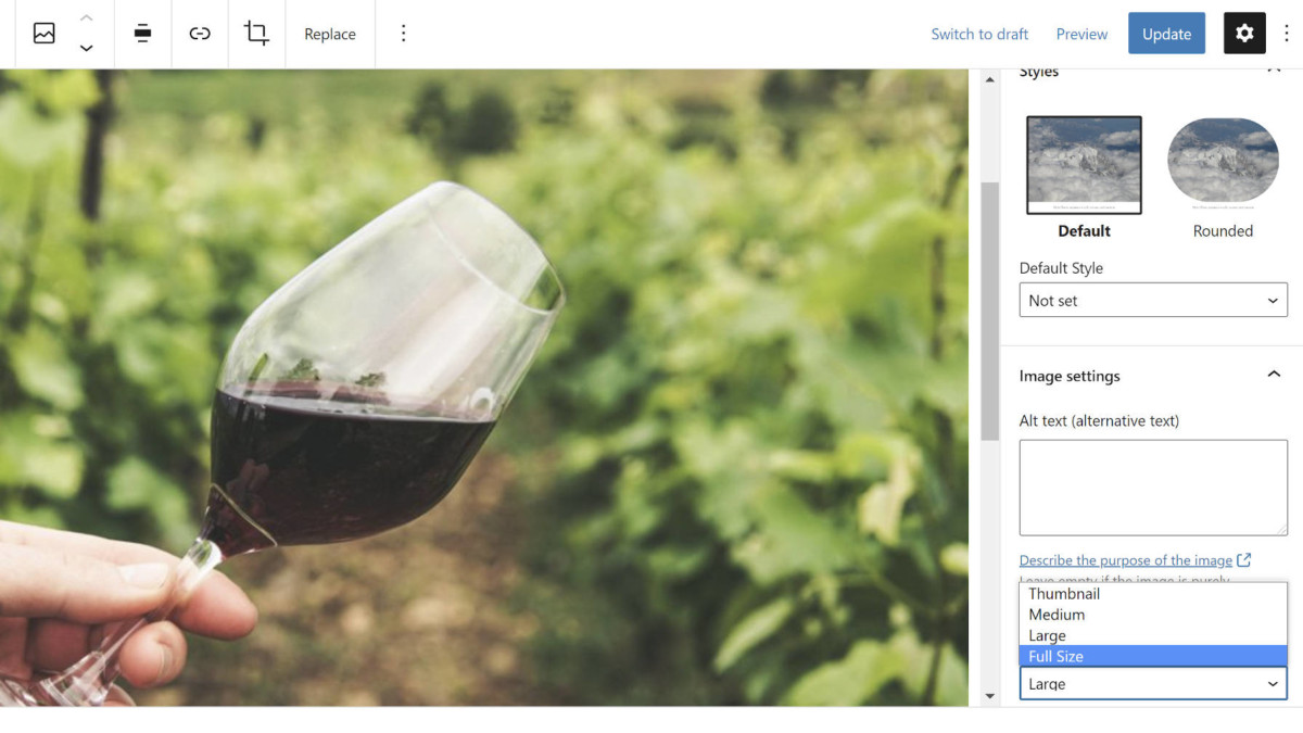 One of my biggest pet-peeves is with the image block in particular. Each time I add an image, I first close the Styles tab in the sidebar. I do not use it often, so it is not important enough to always be open. Then, I must switch the Image Size setting to Full Size from its default Large. I typically format my images for display before uploading and simply want to use the image at the size I uploaded. These are small things, but they break my workflow. As a daily writer, it has become a nuisance over time.