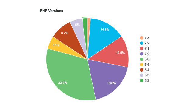 Today only 2% of WordPress sites remain on PHP 5.2. Roughly 20% are on versions 5.5 or earlier. Nearly half of WordPress installs are on PHP 7.0+.